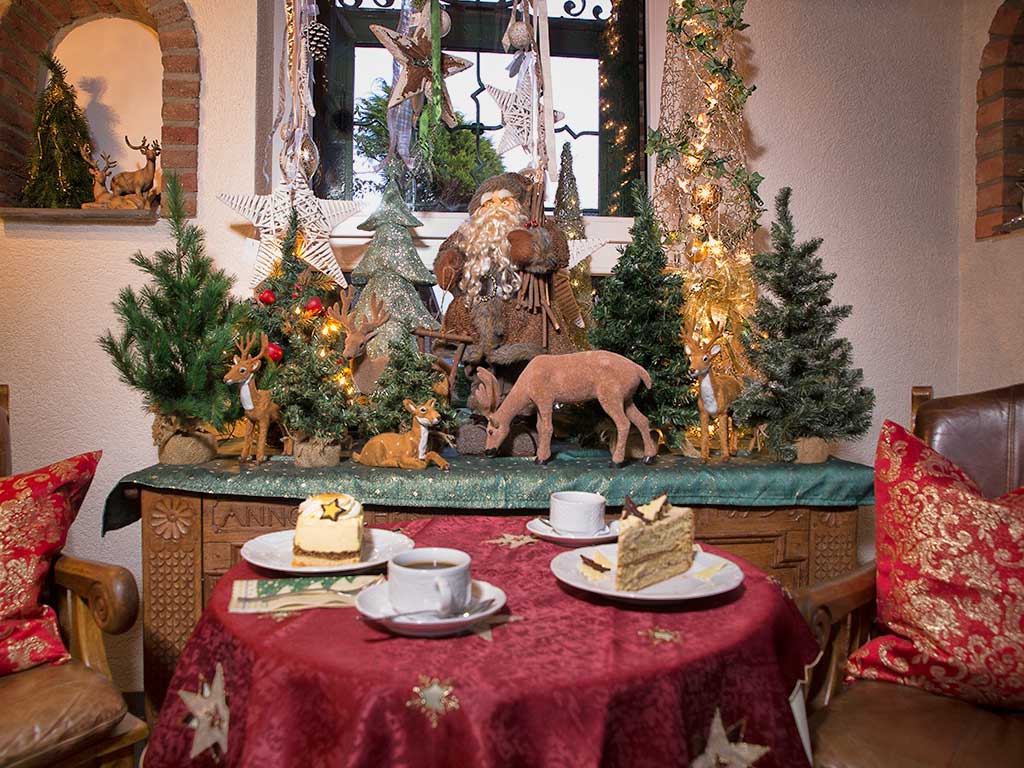 In der kalten Jahreszeit möchten wir Ihnen einen Eindruck unseres Hofcafes zur Adventszeit vermitteln. Genießen Sie in unseren weihnachtlich geschmückten Räumen die Vorweihnachtszeit mit typisch winterlichen Getränken wie Glühwein, heißer Schokolade, Rüdesheimer Kaffee und viele mehr.